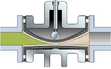 7、球形,指閥體外殼形狀。在采用用控制介質(zhì)注入閥體外殼與套管之間,擠壓套管實現(xiàn)夾斷的方式時,采用球形外殼有利于套管在介質(zhì)壓力下回到完全打開狀態(tài)。